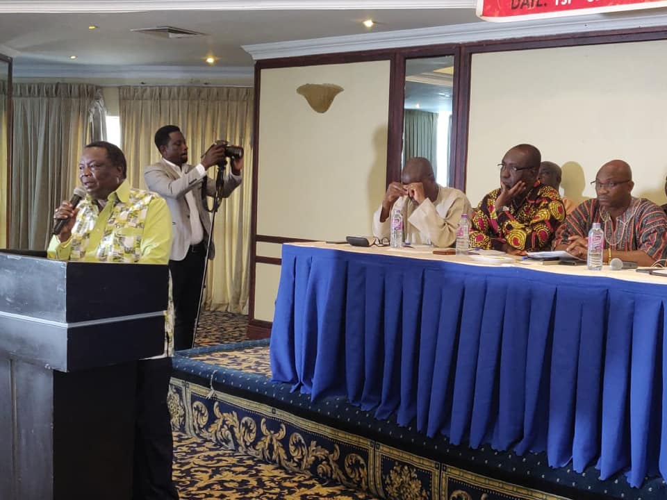 Central Organization of Trade Union, Kenya COTU (K) Secretary General Dr Francis Atwoli addressing the official opening of the Trilateral Trade Union Cooperation Meeting in Accra Ghana. The meeting brings together the four main Trade Unions Centers from South Africa, Nigeria, Ghana and Kenya. The deliberations are aimed at mobilizing capacity of unions which has been a unique asset. With an understanding that Capacity building it is the backbone of Unions political influence which has helped deliver successful outcomes in terms of equity and justice to workers all over the world. solidarityforever.